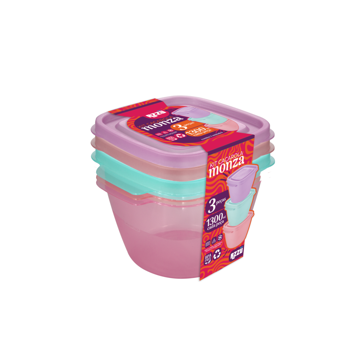 KIT CACAROLA MONZA *TRANSLUCIDO* 3PCS (1300ML) / 519096 AZZU