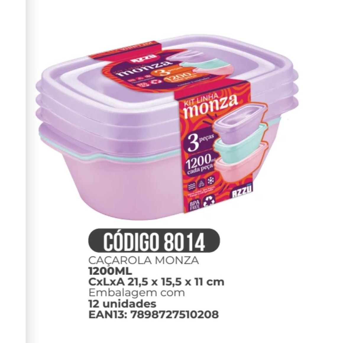 2. KIT CACAROLA MONZA *CANDY* 3PCS (1200ML) 510208 AZZU