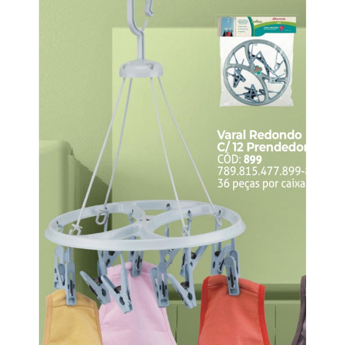 TIPO DE PRODUTO: VARAL DE PENDURAR REDONDO COM 12 PRENDEDORES